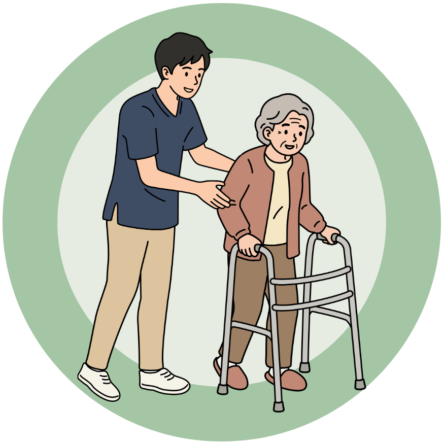 すべてを介助に頼るのではなく、今できる動きや使いやすい動作を活かしながら、立つ・座る・つかまる・回る・移るといった一つひとつの動作を整理します。